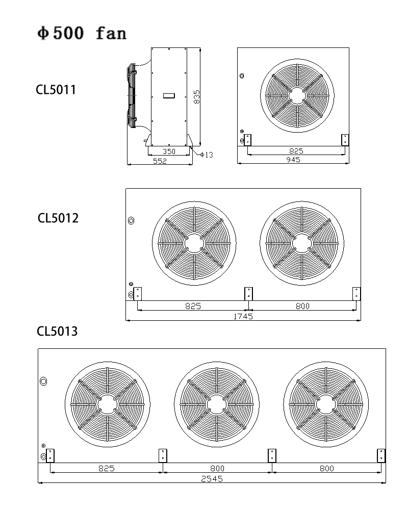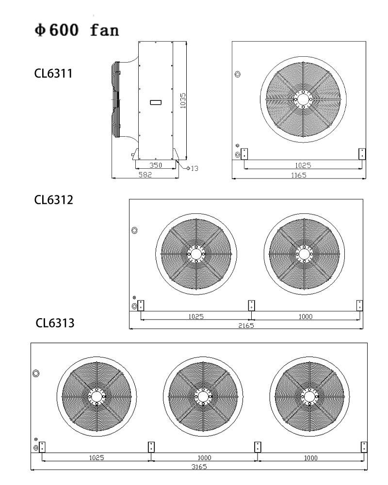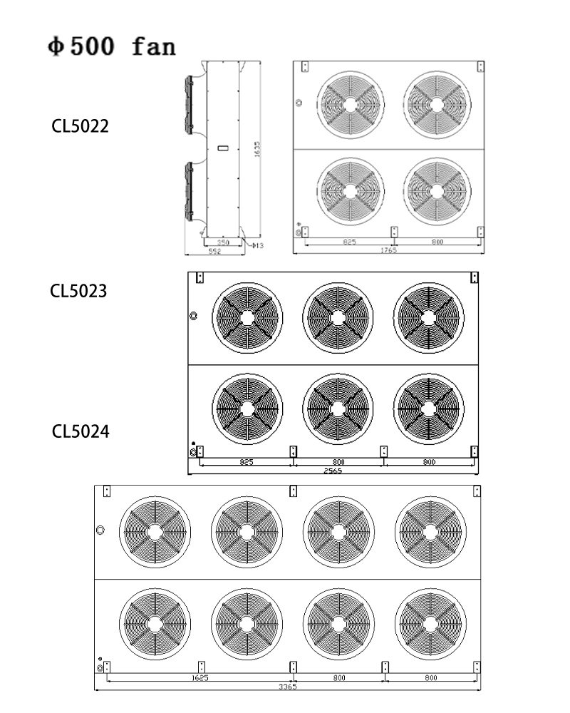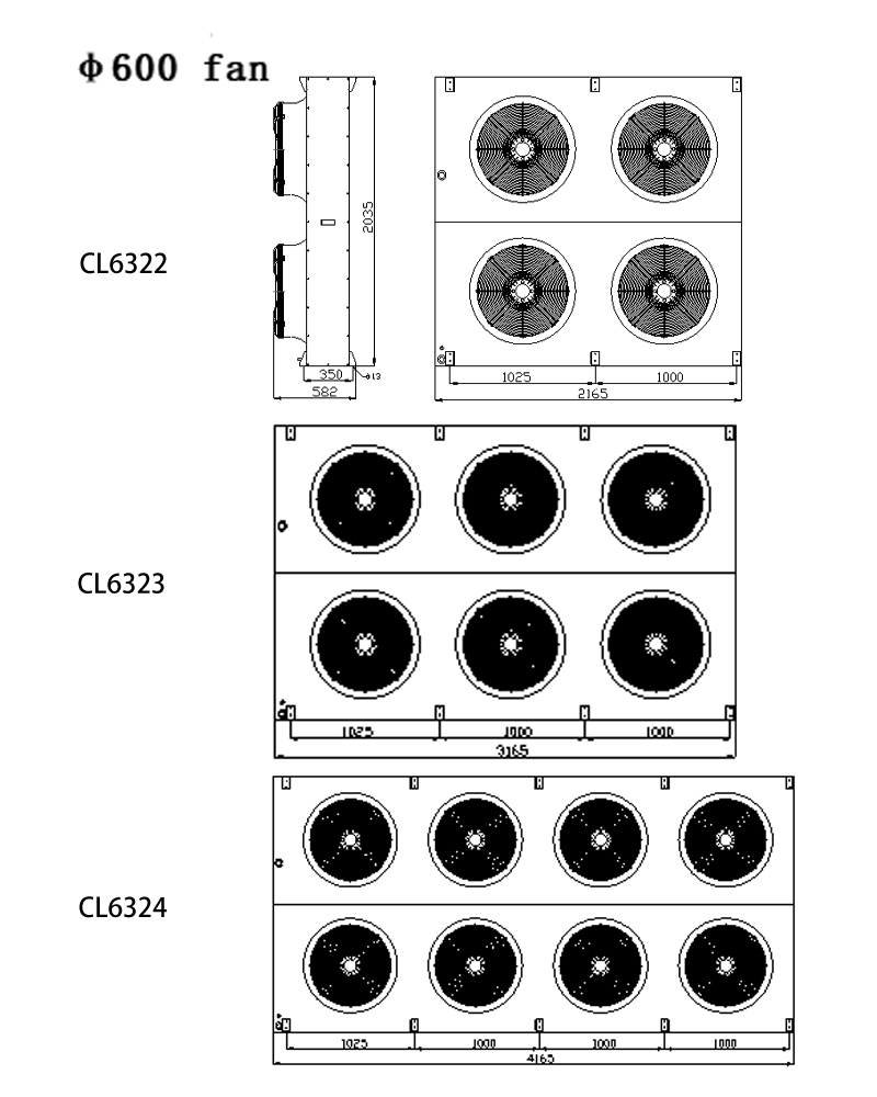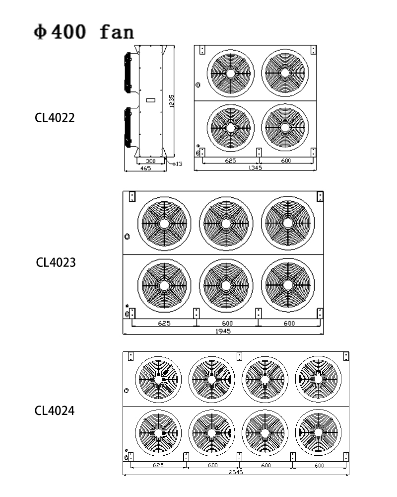 4.风机配置:标准配备 3P/380V/50Hz 电源,提供 φ400、φ500 和 φ630 等多种规格的外转子风机,单排风机可配置 1 - 3 只,双排风机可配置 4 - 6 - 8 只,且标准采用 4 极电机。多样化的风机组合方式,可根据不同制冷需求灵活调整,精准匹配各类工况,保障稳定高效运行。