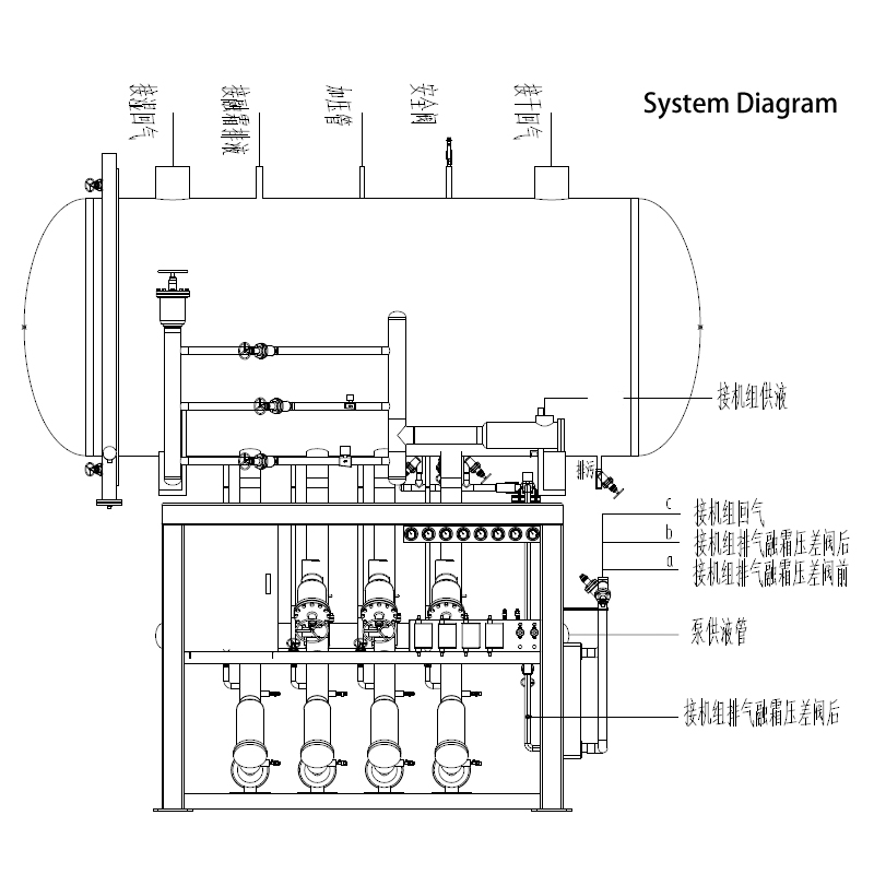 1.提升蒸发效率:采用泵强制供液的方式,相比传统的重力供液,能让制冷剂以更高的流速在蒸发器内循环,强效冲刷蒸发器管壁,减少油污在管壁的附着和沉积,降低热交换过程中的热阻。这一设计使蒸发器的换热效率得到显著提升,进而增强整个制冷系统的制冷能力,缩短降温时间,提高制冷效果的稳定性。