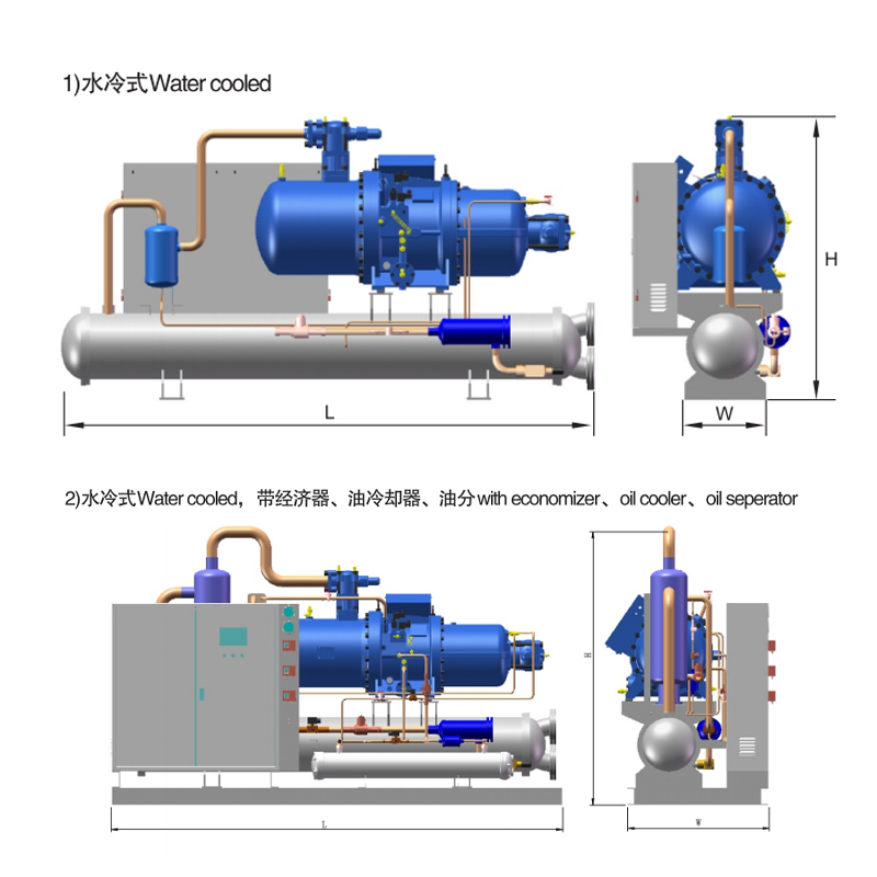 3.壳管式水冷凝器:使用高效外螺纹铜管,管外侧强化传热设计,结合 JB/T 4750-2003《制冷装置用压力容器》标准制造,确保耐压性和长期运行可靠性。该冷凝器兼具储液功能,无需额外配置储液器。